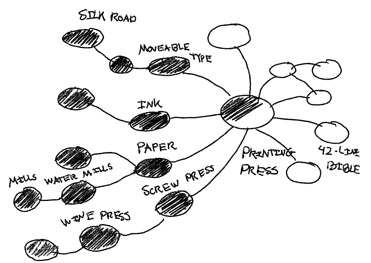 Of course, it took ingenuity for Gutenberg to combine these components to make the printing press. It’s certainly a pattern that the inventor has a profound familiarity with each component. Gutenberg grew up close to the wine districts of South-Western Germany, so he was familiar with the wine press. He had to customize the press, in the same way that much experimentation lead him to come up with an oil-based ink that worked with his movable type (for which he needed to invent molds).