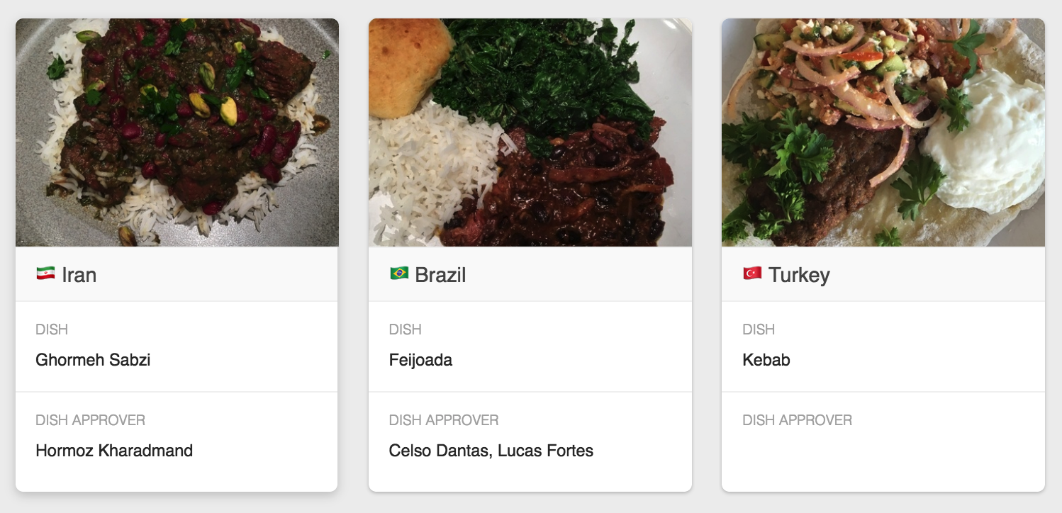 With a couple of friends we have a potluck dinner every couple of months from a random country. We go to the website random.coutry and then everyone has to bring a dish from that country. We’ve been through quite a few countries such as Hong Kong, Bangladesh, Greece, and Brazil. I’ve started tracking some of these and other countries I’ve done independently in an Airtable.