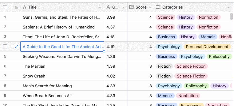 This is a simple base I use to track books and who’s endorsed them. It helps me decide which book to read next. When I hear recommendations of books I’ll note it down here to guide my next decision. Whenever I enter a new book, it automatically populates it with metadata from Goodreads.