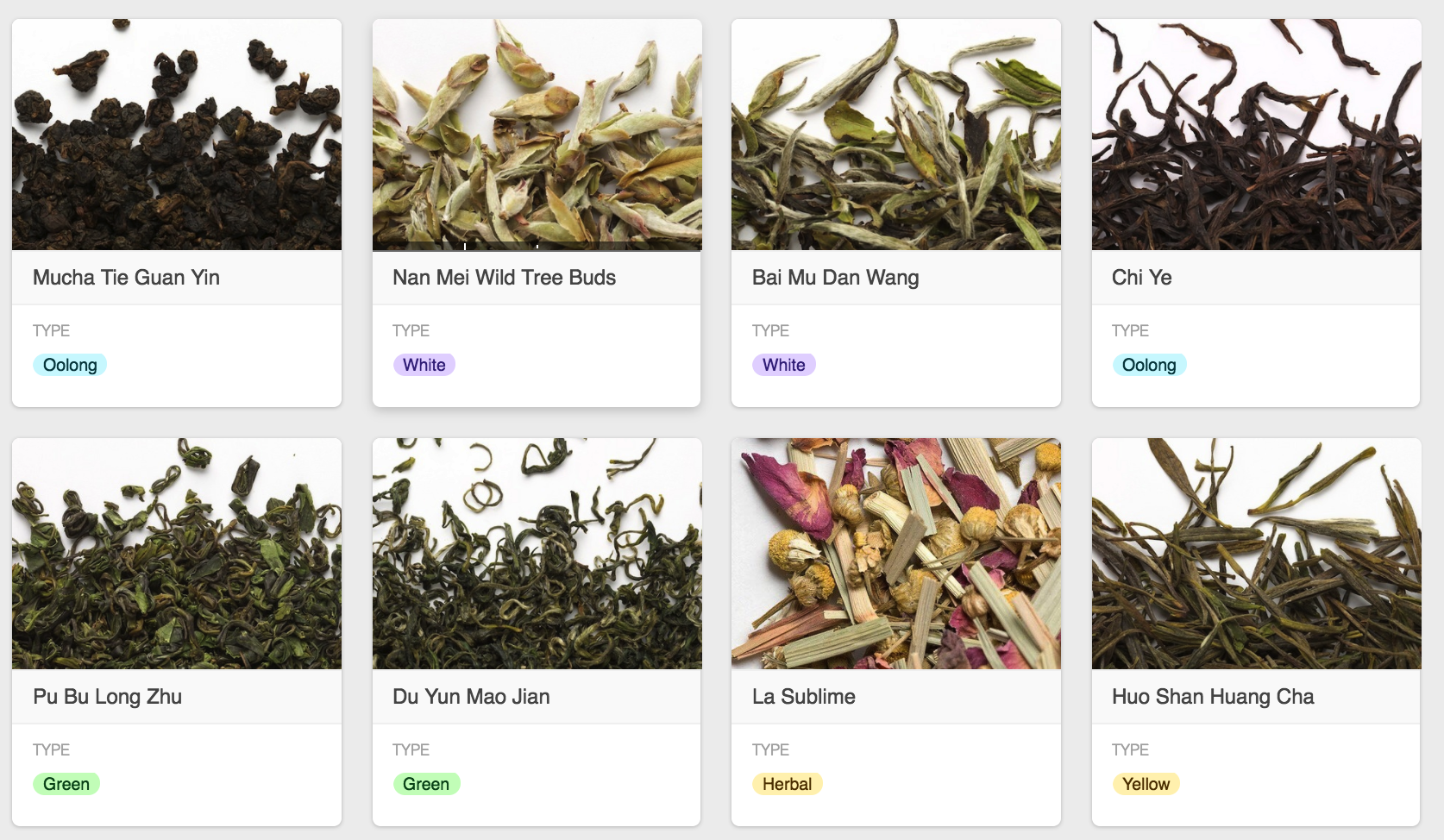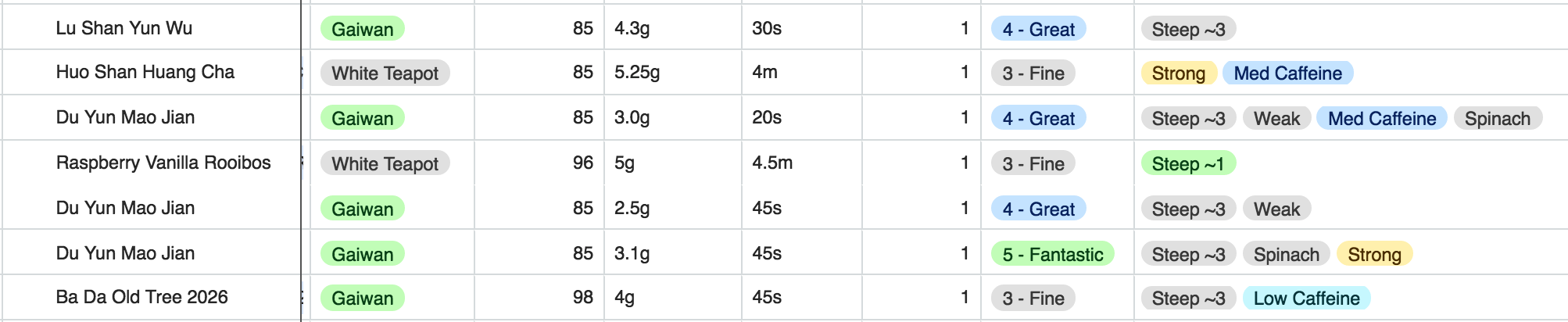 The base first of all has a list of all the teas I’ve bought: