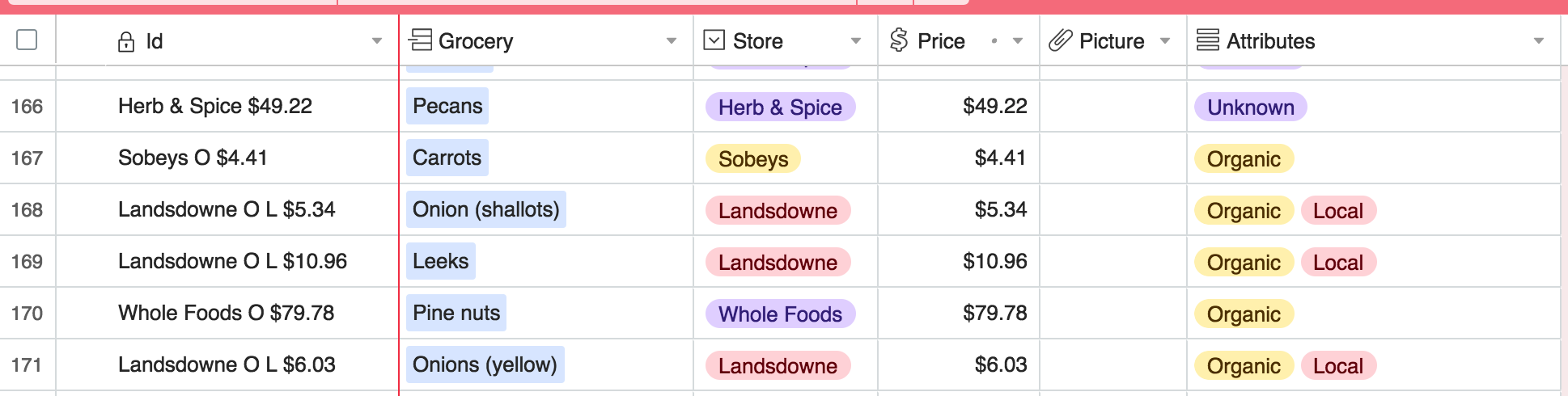 Because I track when certain items are purchased, I’m planning to investigate this data at a later date to see what I buy the most, where and perhaps play with automating the population of those lists.