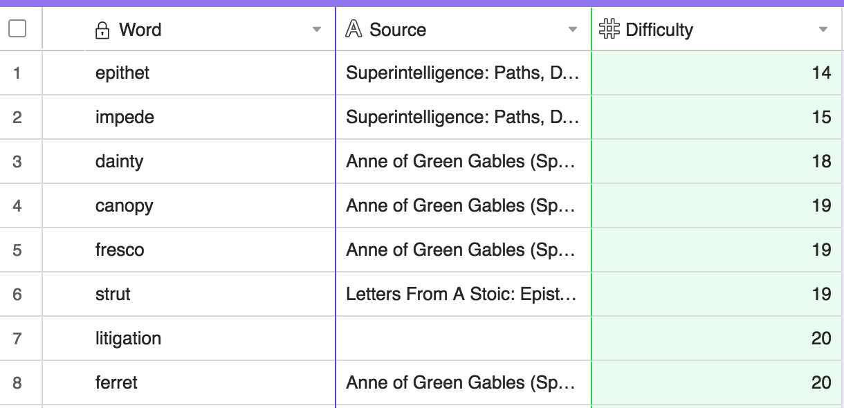 However, as anyone who’s learned another language knows, seeing a word once is not enough. You need to see it more than once. You need to start using it. For that, flash cards are excellent. I use Anki personally, and review it religiously every morning on a variety of subjects (topic for another post). To learn these words better, I built an Anki extension to sync with Airtable. Every time I populate a new word, it’ll automatically create flash cards to help push the word into long-term memory.