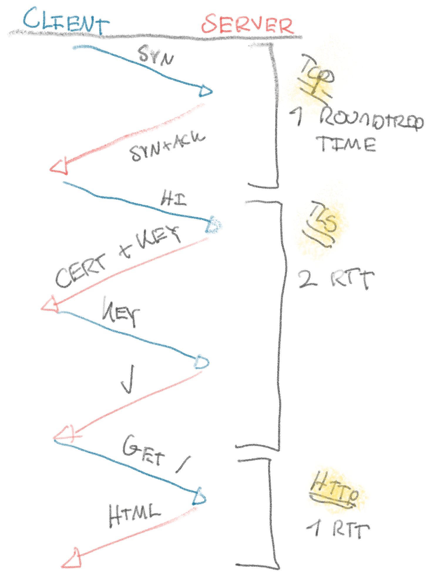 SYNandSYN+ACK) - 2 TLS roundtrips to negotiate a secure connection