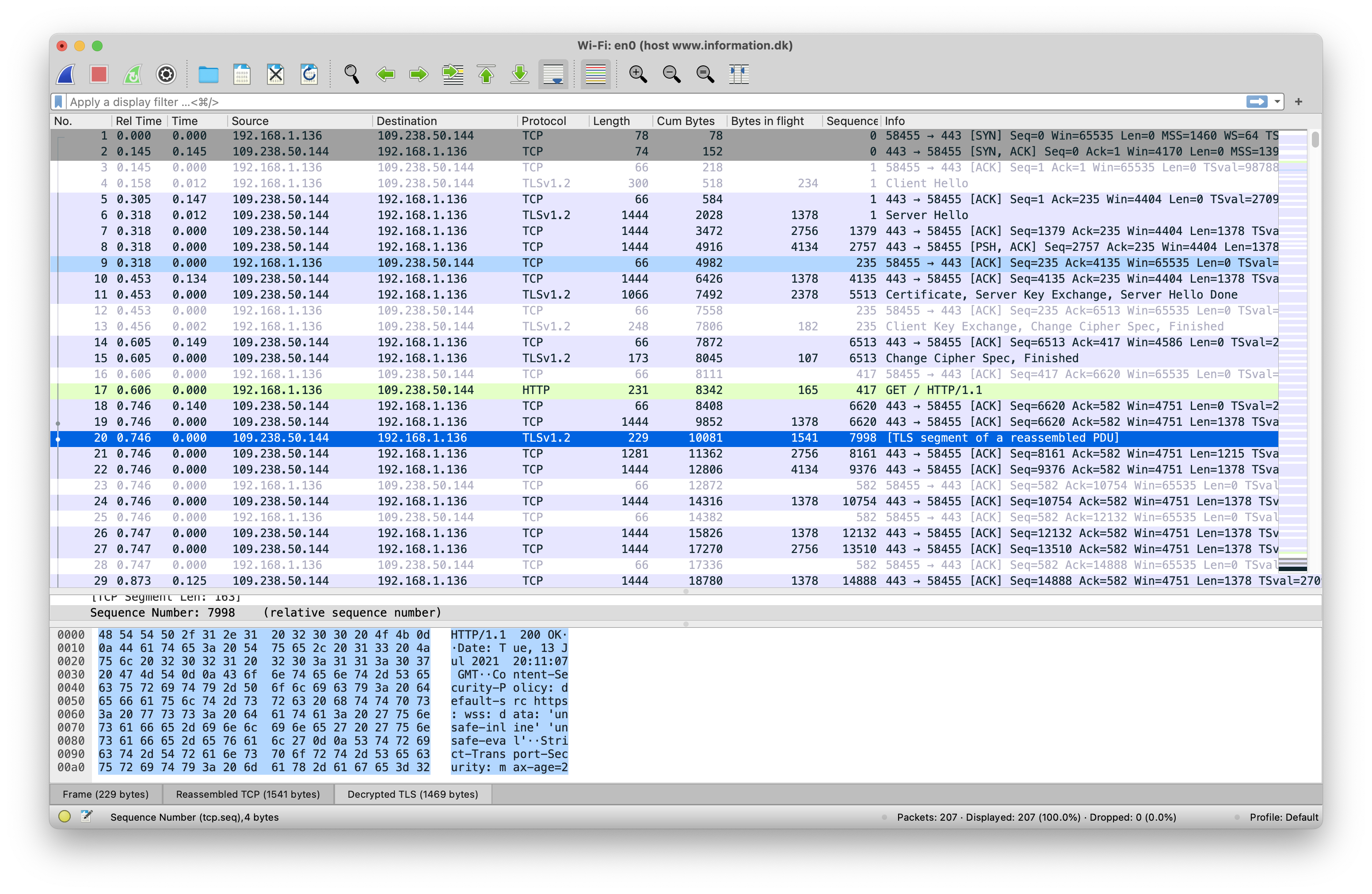 To do that, we have to analyze the raw network traffic with Wireshark. Wireshark